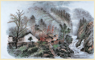 年近七十的山水畫家陳金炳一如其師王教授的興緻和用心。早年雖非出之藝術學府,但是大半生卻無一日遠離筆墨,特別是職場退休之後,全心做老師的忠實跟班,只要王教授前腳踏上青苔,他後腳立刻踏入草房,揮筆舞墨間,但見潺潺流水、小橋和人家,讓凡間立刻離俗。