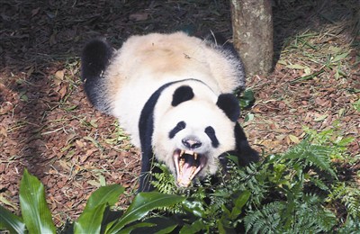 【本報綜合外電報導】新加坡動物園的貓熊「凱凱」、「嘉嘉」昨起面對遊客。「凱凱」(上圖/林以君)大部分時間趴著打瞌睡,偶爾用一個大哈欠迎賓。