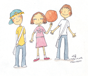 男孩們朝向剛加入他們班的新女生珊蒂走去.