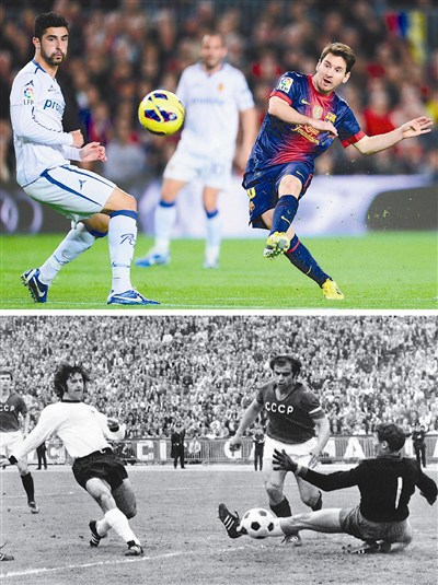 這場比賽之前,梅西本季進球數已累計八十四球,和德國傳奇射手穆勒一九七二年寫下的八十五球只有一步之遙。當年二十七歲、有「轟炸機」之稱的穆勒,為他所效力的拜仁慕尼黑攻進七十二球,為西德國家隊破門十三球。