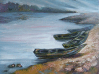有幾隻膠筒筏和幾隻小漁船,在偏西的天光下,像一隻隻黑色的鳥的長啄,輕輕銜住河岸,靜默等待著的表情,為何安靜如斯?可又在等待什麼?