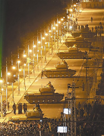 大批埃及人十一日晚間聚集在開羅的埃及總統府前抗議,軍方調動戰車與兵力戒備。圖/美聯社