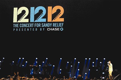【本報綜合外電報導】美國演藝界巨星十二日晚在紐約市曼哈坦麥迪遜廣場花園齊聲開唱,在特別的十二日舉行「12-12-12賑災音樂會」為在珊蒂颶風中受創的災民義演,要籌措三千萬美元以上的善款。全場座無虛席的觀眾沉醉在熱門歌聲中,估計全球有二十億觀眾透過不同社群網站同步收看演出。