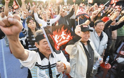 三千民眾昨天到萬華龍山寺前參加「火大列車」群眾大會,發出怒吼表達對政府的不滿。