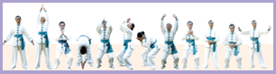 動作簡介:直身站立,雙手向上升起,合掌,再降下,隨之彎腰,再捧氣往眉心,入雙目,體回正,氣沉下丹田。