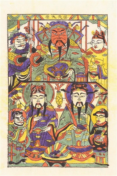 這次展出的作品中,以「門畫類」年畫最具代表性,如秦瓊、尉遲恭為主的武門神畫,與各類象徵吉祥如意的文門神畫。其次「神祇類」的年畫中,主題包括了灶神畫、家堂畫、天神畫與鍾馗等,家喻戶曉的民間神祇;另一幅「上官下財」的年畫,上部為關羽,下部為增福財神,取其「官」之諧音與畫面中的位置,而讀為「上官下財」,寓意可以帶來官運和財運。