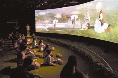 「三好兒童館」的吸睛亮點區,莫過於播放3D卡通電影的「三好劇院」,遊客只要戴上特效眼鏡,就能隨著小沙彌「歡喜」的腳步,身歷其境與外國人、王員外、小女孩來場巧遇,成為三好兒童,隨後,「歡喜」將進一步引領遊客進入「三好學園」,以「行三好」創造歡喜心。
