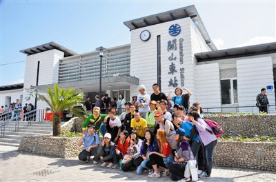 交通部推動「花東新車站」運動,首座花東新車站—關山車站昨天落成,吸引民眾拍照留念。圖/中央社