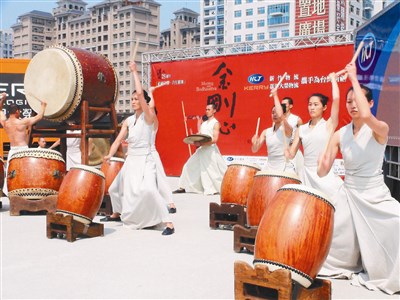 二○一三年台灣燈會周日閉幕,由優人神鼓壓軸演出;昨天優人神鼓在主燈區表演《金剛心》暖身。