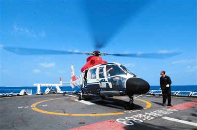 大陸海監直升機準備升空進行定期巡察。最新的大陸政改中,國家海洋局將重新組建,以「中國海警局」名義執法。圖/新華社