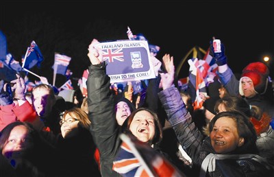 【本報綜合外電報導】福克蘭群島(阿根廷稱馬爾維納斯群島)政府官員十一日晚間表示,島民在公投中一面倒支持繼續接受英國統治,公投結果一揭曉,島民上街歡唱、揮舞旗幟,掀起前所未有的歡慶活動。