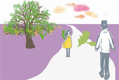 睜大雙眼,我看向遠方山丘上的老橡樹,橡樹上掛著的上百條黃絲帶正隨微風飄揚,而妳,穿著淡黃色的洋裝站在一旁。