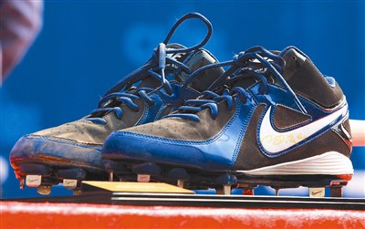中華職棒大聯盟昨天在桃園舉行新球季造勢大會,義賣世界棒球經典賽國手王建民的球鞋(見圖/中央社),中職超級球迷徐嘉聲以七萬元得標,還以一萬元標下兄弟象隊張正偉的簽名球棒。