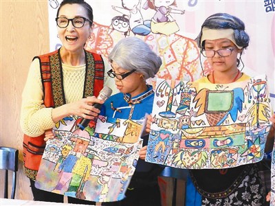 昨天池上米義賣活動,台灣大哥大基金會秘書長阮淑祥與資深義工陳淑麗,特地為小翰等三名小朋友畫老妝,強調老了也要當義工,小翰希望自己八十歲時,能帶著孫子到台東大學門口掃地,祖孫一起當義工;小萱則希望七老八十了還能和同學一起回母校打籃球。