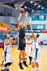 【本報台北訊】體育路的起步雖晚,埔里國中林柏翔二百公分的好身材(上圖/曾思儒)卻沒被埋沒,名列國中籃球聯賽(JHBL)第一長人的他,以打進NBA的「哈佛小子」林書豪為偶像,期待創造南投「林來瘋」。