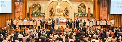 星雲大師與貴賓一同在佛光山如來殿大會堂,為《百年佛緣》套書揭幕。圖/人間社記者陳澤耀