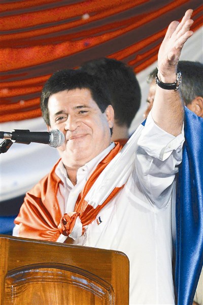 【本報綜合外電報導】巴拉圭選舉官員二十一日表示,在野紅黨候選人、百萬富商卡特斯(圖/法新社)贏得總統大選。選舉委員會主席拉米雷斯表示,卡特斯贏得百分之四十五點九一選票,執政自由黨候選人艾里格里則拿下百分之三十六點八四。