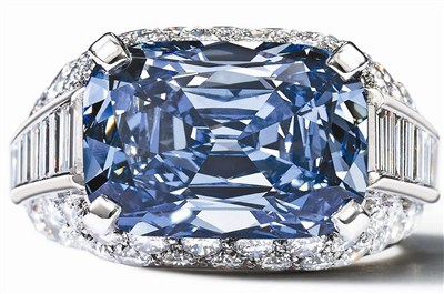 這顆鑽石的Trombino指座出於義大利寶格麗,時間約可回溯至一九六五年。王室和名流數世紀來都十分垂涎藍鑽石,但藍鑽鮮少流入市場。十七世紀法國國王路易十四購買的「希望之鑽」就是最著名的例子之一。