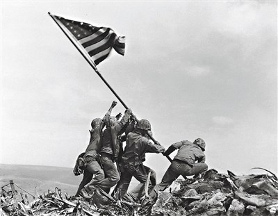 陸戰隊和海軍中有六人後來在硫磺島摺山豎起這面星條旗。美聯社攝影記者羅森塔爾(Joe Rosenthal)按下快門,捕捉到這一刻。