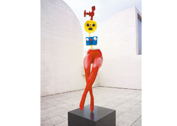 「女人.小鳥.星星—米羅特展」,昨天舉行開箱記者會,米羅的畫作〈戴著漂亮帽子的女人,星星〉、〈太陽下的人物與鳥〉、〈夜之鳥〉,及彩繪銅雕〈逃離的女孩〉率先在媒體前亮相。