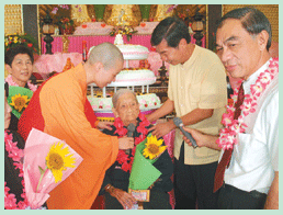 點燈祈願 消災祈福 陳冠樺/文 朱秘賢/圖 |2006.11.22 語音朗讀 490觀看次 字級 大 中 小 圖為李轉老菩薩接受眾人祝福。欣逢藥師如來聖誕,各地信眾到佛光山道場佛前點燈祈願,祈求藥師佛慈悲願力加持,所求如願、消災祈福。台南慧慈寺還為長期發心護持人間衛視、人間福報的王福大之母百歲高壽李轉老菩薩及各佛光分會六十至九十歲壽星舉行祝壽典禮,信眾高唱無量壽佛,並由佛光青年獻花祝賀,常住代表致贈星雲大師「觀自在」墨寶,祝福老菩薩福壽綿延。 前一篇文章 《佛光橋》 下一篇文章 《人生問卷250》有錯相互提醒 為自己培植善緣 熱門新聞 01【詩】草螟公2025.12.1802與精品品牌撞鞋 印度涼鞋打專利戰2025.12.2103高雄新航線明啟動 佛光山成亮點2025.12.1704福建艦航經台海 空拍照首曝光2025.12.1805佛州光明寺蔬食餐會 年終感謝警察2025.12.1706資助流浪漢之家 里斯本佛光人跨文化送暖2025.12.1807多倫多佛光山龍獅團 中華文化薪火相傳2025.12.1808佛光山高雄佛教堂 營建工地評鑑特優2025.12.1909佛大榮譽教授曾淑賢 獲圖書館事業貢獻獎2025.12.1710【島嶼拼圖】中壢醫院古建築2025.12.17 訂閱電子報 台北市 天氣預報 台灣一週天氣預報 相關報導 緬懷星雲大師 全球佛教學者暢談人間佛教245校雲端交流 凝聚三好共識推廣生命教育 林聰明獲特殊貢獻獎西方寺瑜伽課 接引民眾結法緣元宵乞龜 390兩大金龜亮相基督城地震10年 佛光山領眾祈願