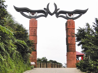 道場入口山門稱為「天眼門」,宛如兩隻鷲鳥合成的雙眼,造型相當特殊。門柱則刻有各宗教的古老修行圖騰,表達了「尊重、包容與博愛」的華嚴精神。一入山門,步道即一分為二,分別通往觀音道場以及道場主殿。觀音道場一尊十二公尺高、青銅鑄造、金身顰眉黧面的多羅觀音面海而立,四周則有五十三座造型各殊的舍利塔林。從觀音道場外望可以遠眺狒狒山,天候良好時甚至可一路延展向台灣島最東點的三貂角,景致怡人。
