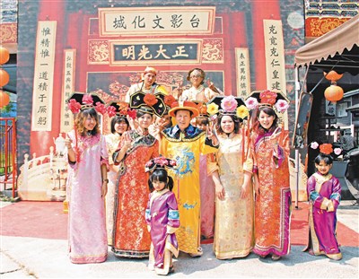 台影文化城設計一個模仿台灣復古初期的小鎮,擠滿今人古貌。董事長林士榮表示,台影文化城在建國百年之初,斥巨資完成的明清時代商店街忠實呈現明清時空背景,置身其中,彷彿走入時光隧道,也是遊客拍照的熱愛景點之一。戲服拍照區搭建皇宮背景,讓遊客在此換戲服享受拍照樂趣,在紫禁城扮一次皇上和格格。