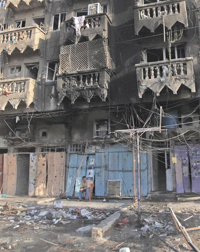 齋戒月剛結束,伊拉克就發生多起爆炸、槍擊事件。在伊北,一名商店老闆無奈地坐在遭到汽車炸彈攻擊的商店前。圖/路透