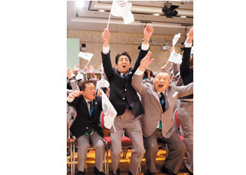 國際奧會宣布選出東京承辦二○二○夏季奧運的一刻,日本首相安倍晉三及代表團所有成員都高興得躍起歡呼。安倍八日在電視上預測,申辦奧運成功,將為日本的經濟成長帶來「順風」。圖/美聯社