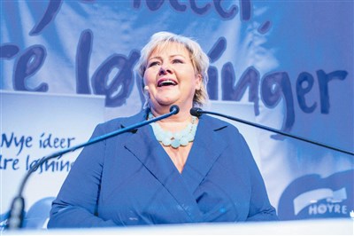 【本報綜合外電報導】承諾減稅與改善健保的挪威在野保守黨,周一在國會選舉中取得壓倒性勝利,五十二歲的保守黨黨魁瑟爾貝克(Erna Solberg,圖/法新社)將成為挪威第二位女總理。保守黨將與民粹政黨「進步黨」及兩個中立派政黨組建聯合政府,但「進步黨」主張提高開支並抑制移民,保守黨在籌組聯合政府時,勢必面臨艱難的政治協商。
