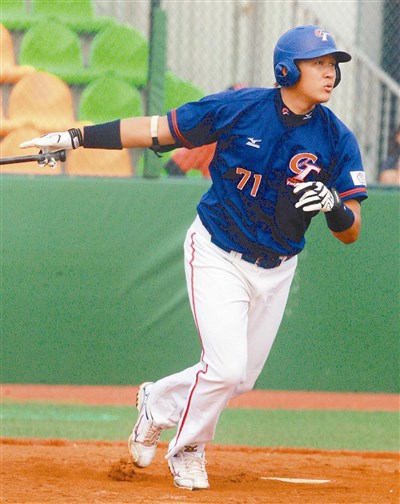 二○一三年天津東亞運,中華棒球隊昨天對戰香港,狂掃十九支安打,送出十三K,以二十五比○在五局提前結束比賽,還送給對手無安打比賽。圖為中華隊許基宏二局上擊出兩分砲,助中華隊單局狂攻十二分,奠定勝基。中華隊今天下午面對日本,是關鍵賽事,將推出芝加哥小熊高階1A右投王躍霖先發。