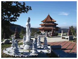 繞了半個多小時後,終於開到山頂,來到我們自己的「玫瑰陵」。一上了這最高點,看到我們的寶壇和四周的佛像,剎時心胸開闊,又是一番不同的境界。