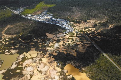 報告指出,二○○八年之前,淘金每年造成森林流失二千一百六十六公頃;全球金融危機爆發後,森林流失速度加快到每年六千一百四十五公頃。