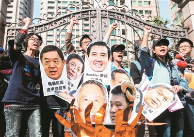 部。抗議民眾也拿著馬英九總統、連惠心、徐旭東等「十大惡人」的圖片,控訴惡質資本