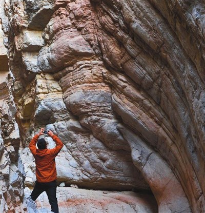 新疆喀什地區伽師縣的天門大峽谷位於天山支脈壟坪山系,峽谷全長約三十公里,兩側斷臂高崖,猶如山體強行撕裂而成。大峽谷不同時期的山體變化,較為全面地記錄了近四億年來新疆地質地殼運動變化的全過程,是一座名副其實的「地質博物館」,吸引不少遊客在喀什天門神秘大峽谷拍照。景區以探險、攀岩、淘寶、地質勘探、奇石怪石鑑賞等旅遊項目為主線。景區內設置有愛情谷尋情印、愛情谷連心瀑、愛情谷休閒驛站、地震谷、峽谷千年胡楊林、白龍谷、神熊石、鷹眺崖、情侶梧桐、高山泊舟、風蝕神溝、通天之門、靈蛇山、野馬古道、開門見山、登天梯等三十多處景點。 圖/新華社