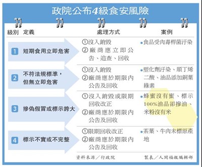 政院公布4級食安風險