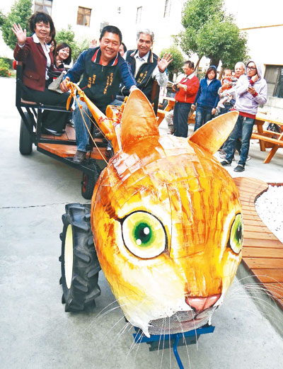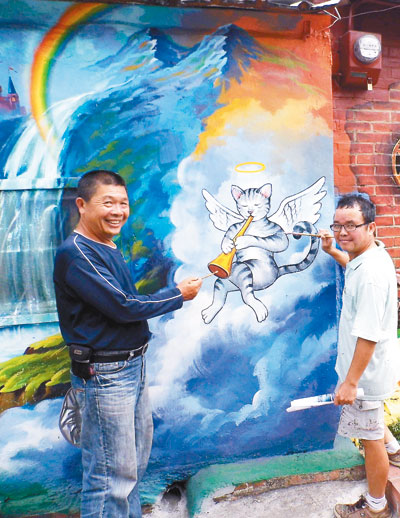 蘇坤福邀田榮鈐重拾畫筆,一起完成這個「貓故事」。很久沒提畫筆的田榮鈐,洋溢著喜悅說,這是他喜愛又擅長的事,大牆就像大看板,比例尺寸他都抓得準。田、蘇用農用鐵牛改裝成的貓公車昨天上路,動畫《龍貓》中的貓公車真實呈現,迷倒不少年輕人。
