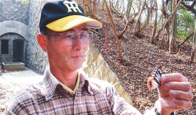 日專家福村拓己想抓到自己標誌的蝶,昨專程抵澎。圖/許玉娟