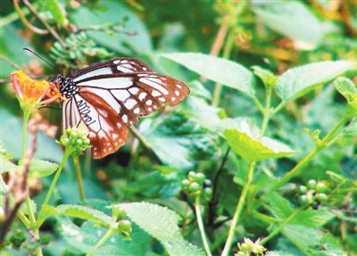 【本報澎湖訊】澎湖西嶼西堡壘地形避風、外來植物豐富,上月底起陸續發現七隻日本標放的青斑蝶,最遠的從日本長野花五十七天飛行二二七九公里到澎湖,有兩隻是日本專家福村拓己標放,福村「想抓到自己標誌的蝴蝶」,昨天專程抵澎,《朝日》新聞記者也隨行跟拍這項青斑蝶長途遷移最南的新紀錄。