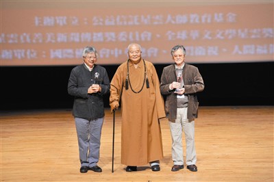 【記者郭士榛台北報導】第五屆「星雲真善美新聞傳播獎」、第三屆「全球華文文學星雲獎」,昨日下午舉辦聯合贈獎典禮,場面隆重盛大。新聞傳播獎「華人世界終身成就獎」首次頒給台灣地區以外的新聞媒體界人士黃效文;文學星雲獎「貢獻獎」贈給鄉土文學小說家黃春明,為隆重溫馨的典禮平添傳奇色彩。