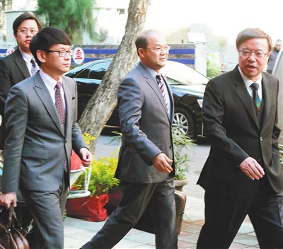 立法院長王金平確認黨籍案開庭,國民黨律師羅明通(右起)、陳明、施汎泉走進法院。羅明通表示本案是「大是大非」關說問題,損害國民黨聲譽,不能扭曲國內的司法正義。圖/曾吉松