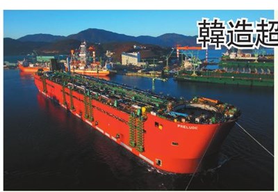 這艘四百八十八公尺長的液化天然氣平台,上月三十日已經在巨濟市的造船場下水。