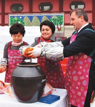 南韓「醃製越冬泡菜文化」五日入選非遺,是南韓第十六個入選項目。醃製泡菜流程複雜,擇菜、切菜都需要眾多人手,街坊鄰居會互相幫忙,因此泡菜也象徵鄰里分享的精神。五日南韓首爾舉辦「泡菜文化節」,為申請非遺造勢,介紹各地泡菜特色,並舉辦醃漬泡菜的體驗活動,向國內外遊客宣傳泡菜文化。
