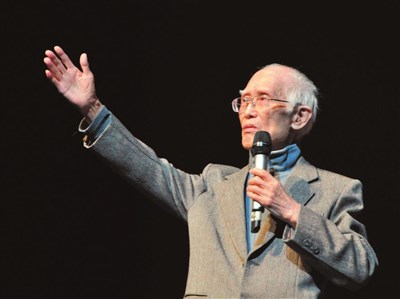 詩人余光中二十九日獲頒二○一三兩岸詩會桂冠詩人獎,他現場朗誦《鄉愁》。圖/新華社