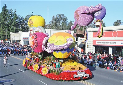 玫瑰花車遊行是美國新年活動,在帕沙迪那主要幹道科羅拉多大道舉行,總長九公里,今年的主題是「夢想成真」,有近百部花車參與。