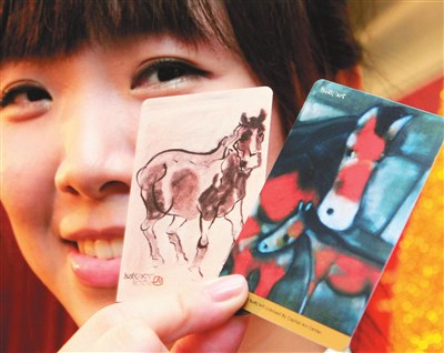 悠遊卡馬年生肖套卡昨天上市,版面延續使用劉其偉大師的兩張畫作。其中「駿駒盤富賀太平」以大地色調襯底,馬兒恣意徜徉在春暖花開的富饒大地,準備在新的一年大展身手、奔騰萬里;「彩鱗辭歲馬迎新」畫中幼馬依偎在母馬身邊,親子團聚的景象顯得溫暖和諧。 圖/屠惠剛