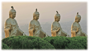 記得,十年前,灑淨的夜晚,萬人聚集大殿的廣場,齊誦大悲神咒。不可思議,東山的大佛轉身,面向西邊的「大雄寶殿」。那時候,大殿的廣場,萬人跪拜。我往大佛站立的所在地奔去,看見大佛如如不動,滿身是汗,再返回廣場,金色的大佛依然朝向我們。那一刻,我的心被強烈的電流震盪,佛心晝夜六時,都面向我們,是我們的心奔馳於是非計較的人流,佛百般無奈癡望著我們,這萬萬千千的人流,少有人心眼張開,照見溫柔的佛光。
