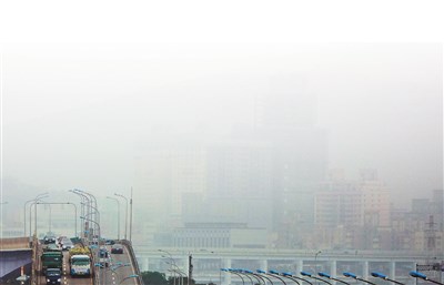 台北市環保局昨日表示,寒流來襲挾帶境外空氣汙染物,全台各地懸浮微粒濃度偏高,敏感族群或是抵抗力較弱的人應小心防範。 圖/中央社