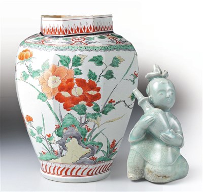 將在伊萬里瓷器特展中展出的五彩山茶花八角壺。