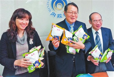 新戶役政系統上路後狀況不斷,內政部次長蕭家淇(中)、新任戶政司長張琬宜(左)、資訊中心主任沈金祥(右)召開記者會說明,蕭家淇表示,系統會愈來愈穩定,要長遠解決系統問題,硬碟容量要再增加,並評估是否多買一個主機。特別的是,記者會還搬來了兩箱「乖乖」,沈金祥說,資訊人員拜「乖乖」,已經是傳統了。 圖/中央社